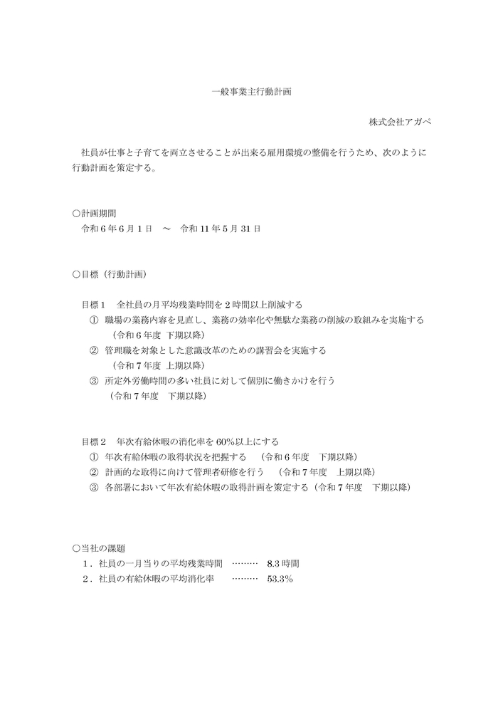 一般事業主行動計画